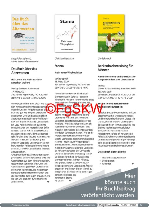 offenen Gesprächs untermauert sie mit »Stoma – mein neuer Wegbegleiter« oder als begleitende Therapie bei orga-