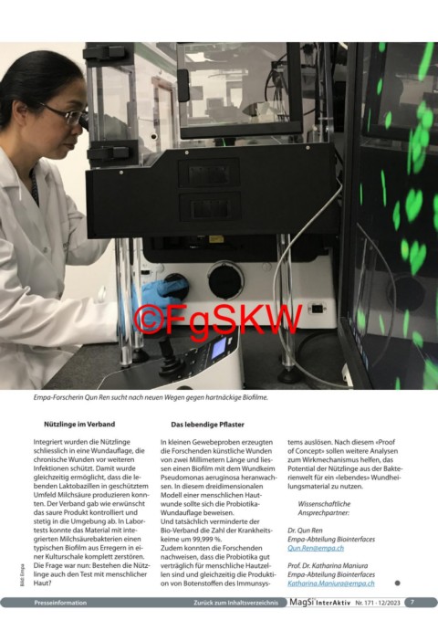 typischen Biofilm aus Erregern in ei- Zudem konnten die Forschenden Qun.Ren@empa.ch