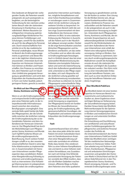 im Bereich des Ernährungsmanage- re Procedere und vor allem die weite- versorgung. Gelingt es Kliniken, ihre