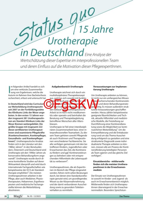 m folgenden Artikel handelt es sich Aufgabenbereich Urotherapie Voraussetzungen zur Implemen-