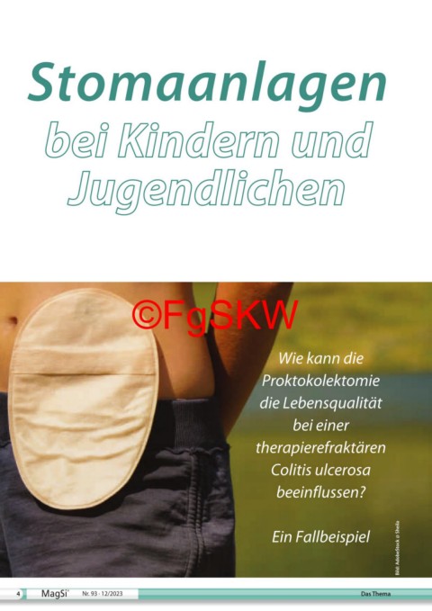 Stomaanlagen bei Kindern und Jugendlichen ©FgSKW Wie kann die Proktokolektomie die Lebensqualität bei einer therapierefraktären Colitis ulcerosa beeinflussen? Bild: AdobeStock @ Sheila Ein Fallbeispiel 4 Nr. 93 · 12/2023 Das Thema