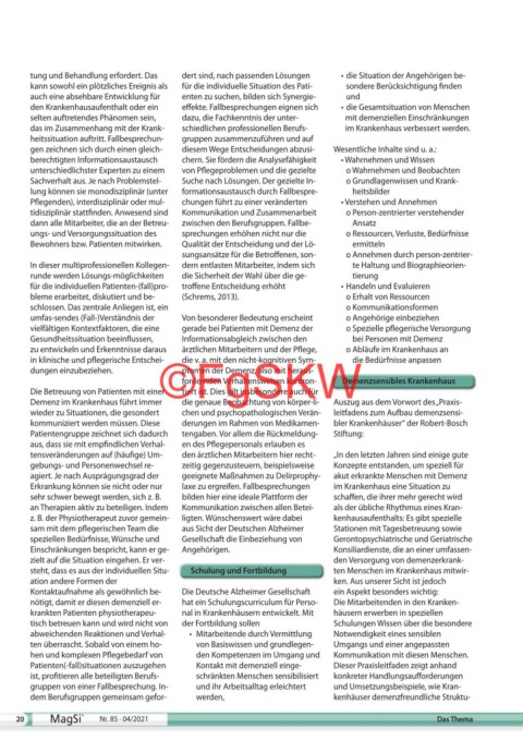 nötigt, damit er diesen demenziell er- hat ein Schulungscurriculum für Perso- Die Mitarbeitenden in den Kranken-