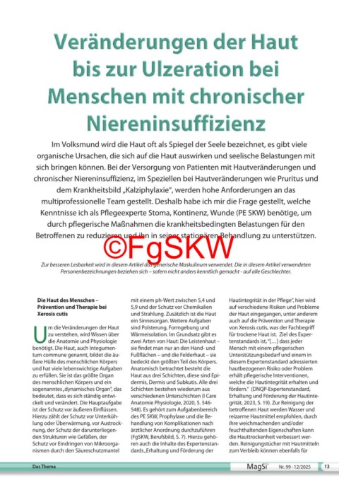 dem Krankheitsbild „Kalziphylaxie“, werden hohe Anforderungen an das