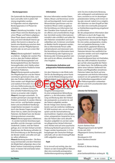 Beratungsprozess in 6 Phasen be- handenes Wissen weiter ausgebaut. tum über eine eventuelle postoperati-