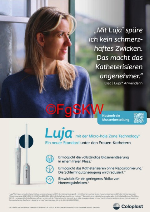 * Luja™ für Frauen ermöglicht keine Urinfl uss-Unterbrechungen bei 87 % der Katheterisierungen & < 10 ml Restharn nach der ersten Flussunterbrechung bei 83 % der Katheterisierungen