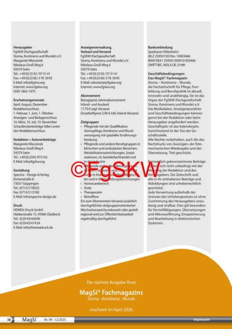 Erscheinungsmonate Bezugspreis Jahresabonnement Organ der FgSKW (Fachgesellschaft